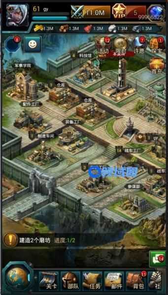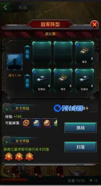 在主菜单点击部队按钮,可以进入部队设置,如图,玩家在该界面可以设置部队的阵型,可以选择部队的装备等,保存阵型在其他出战界面选取,玩家也可以在该界面设置阵型防守自己的基地。