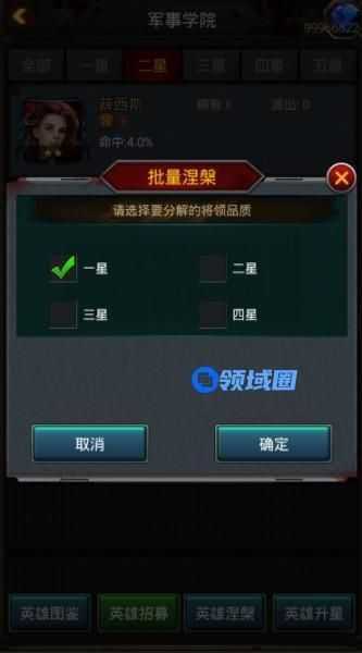 点击城内建筑战争学院可以进入将领系统,在该建筑内,玩家可以查看自己拥有的将领和未拥有将领的图鉴。并可以对拥有的将领进行升级,进阶操作。也可以在该建筑内招募,合成新的将领。