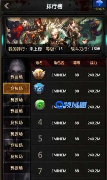在主菜单中选择排行榜,可以进入排行榜界面,如图,在此页面可以查看自己在游戏内的排名,了解其他玩家的排名。