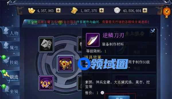 50级装备:逆鳞刀刃/逆鳞甲片、逆鳞石、40级装备