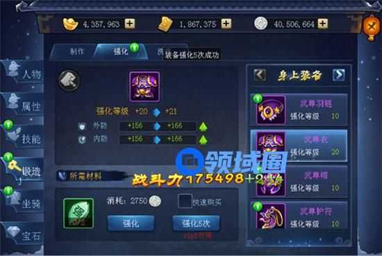 强化装备需要消耗强化石,装备强化等级越高,属性越高。