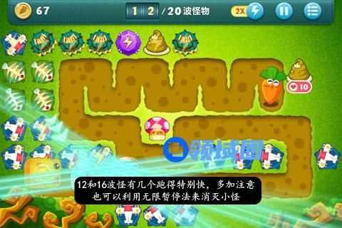 12和16波怪有几个跑得特别快,多架注意也可以利用无限暂停法来消灭小怪。