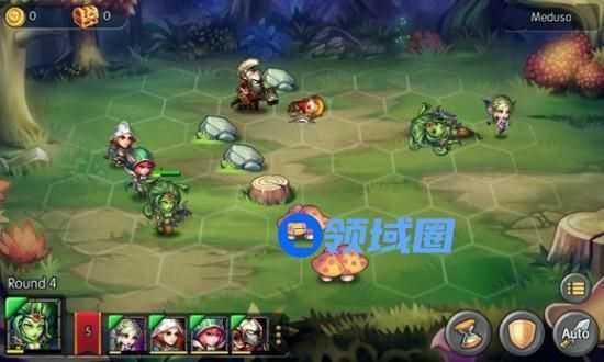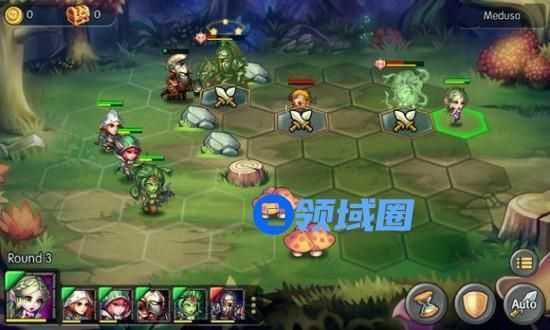 第三回合妖精大招美杜莎,(我这里是美杜莎攻击妖精miss了,照常理第三回合可以大招),美杜莎收黑骑人头)