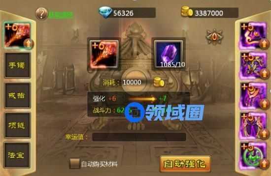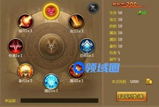 3、强化消耗强化石,强化失败不掉级,每次强化都会获得幸运值,幸运值越高越容易强化成功,成功后幸运值清零。