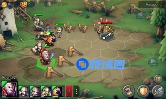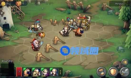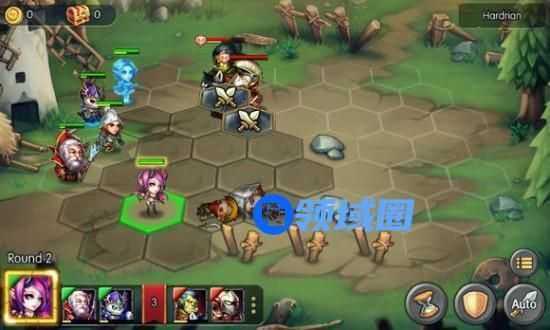 第二关推荐阵容及站位如图,第一回合全部等待,侍从反击击杀强盗后大招骑兵,其他人员围殴其至死,注意别卡本方骑兵路。