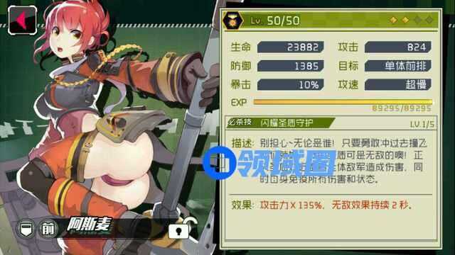 阿斯麦,作为一个前排肉盾,血量和防御足矣让她成为一个很出色的前排防御,橙卡在技能上有了很大的提升多了3秒的无敌使得阿斯麦更加的不可撼动。阿斯麦 一开始你们叫她屁股 我都不知道为什么 直到看到卡面全双马尾最肉角色 没有之一(在没有出更坦的卡之前)是前排不二的选择 但是控场能力稍弱(没有什么控制能力) 就是一个纯纯粹粹的肉 (笑)