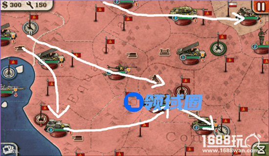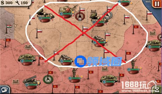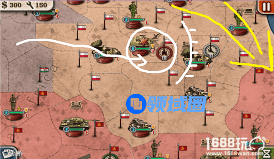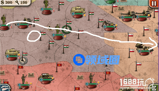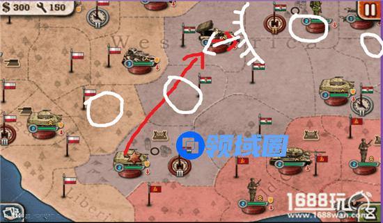 匈牙利指挥官走位100%如下图中红色箭头。只需要坐城跟他耗血即可。注意把城市升回2级/3级都可以。随后坦克部队与画圈处集合。需要回血的坦克部队待在城里。切记初期不可突破隔离带。