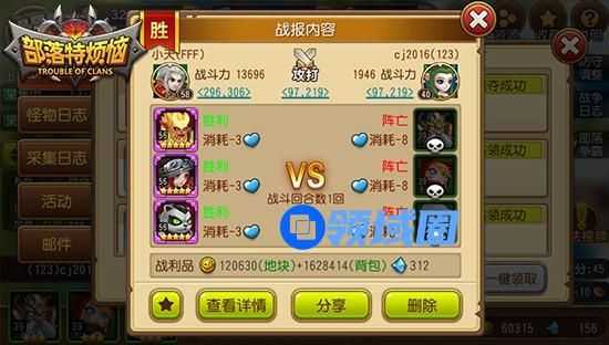 当然,占领地块是可以获取资源并持续产出的,而掠夺则仅仅是一次性的收益,譬如地图上的野怪、宝石矿都是这样的存在。我们可以通过界面右侧“战争日志”里查看战斗记录和资源获取详细情况。
