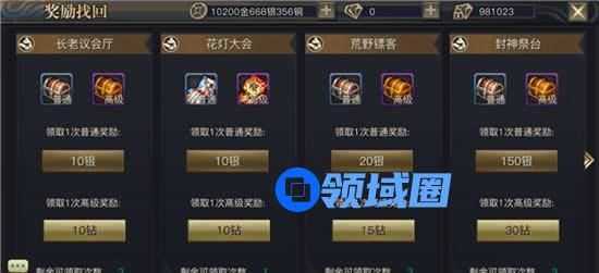游戏提供了2种找回方式,游戏币找回和钻石找回,使用钻石找回将能够获得高于游戏币找回的玩法奖励,但如果玩家要获得最大奖励,还是需要每天实际参与玩法,所以一定要在万不得已的情况下使用哦。