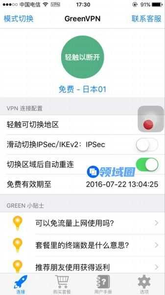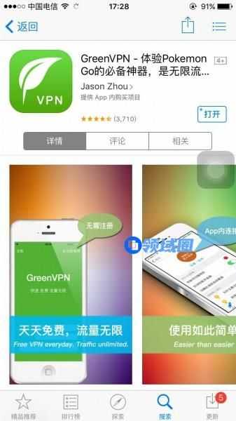 第一步,在苹果商店下载工具软件,小编个人推荐使用Green工具,下载并注册好之后按照说明连接工具,连上之后在你的手机信号标志旁边会出现一个工具的标志,这就意味着你已经成功翻过伟大的防火墙,可以任性的上谷歌、等外国网站啦。