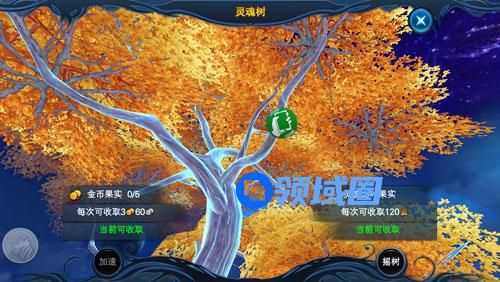 灵魂树是生长在梦境空间的一棵神奇而飘渺的树,但灵魂树每天能给玩家提供的却是实在而丰厚的。灵魂树上每天都有大量金币之果和稀有的灵魂树之叶果实在生长,玩家只要简单的摇一摇屏幕,金币和灵魂树之叶就成堆的洒落,任你拾取。