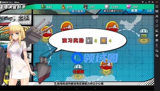 不知道是不是因为小编我打的比较快,一路上遇到的敌人都是1J的战舰,轻松加愉快就顺利通过了,而且钢铁少女的演习每天可以重置一次,从头再打一遍。