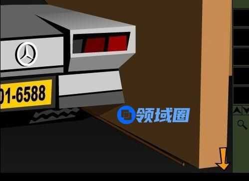 2、点击汽车的右下角,靠墙的角落处有一根长长的铁钩,点击拾起。