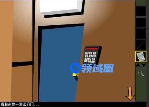 4、点击蓝色的门,用刚才纸飞机里的密码进入蓝色的门,进入左边黄色门,这是一个洗手间,在水管后可发现打火机。