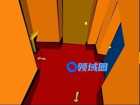 9、进入电子门,重新输入六位密码(忘记可看纸条)。两次往右,然后上楼,在楼梯的拐角处的角落里,找到一支粉红色。往下回到一楼,用粉红色钥匙点击粉红色的门(颜色稍深,为一客厅)。