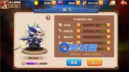 当英雄达到橙色5星时,无法再提升星级,魄力功能开启,每获得30魂石提升魄力等级1级,魄力没升1级就可获得3点属性分配,由玩家自由分配英雄的属性点。
