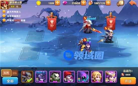 1)首先进行英雄的排兵布阵,因为战斗中可以自由对英雄进行移动,所以布阵的站位只有首发和替补之分。最多首发上场的英雄可以有4名,替补英雄有2名。