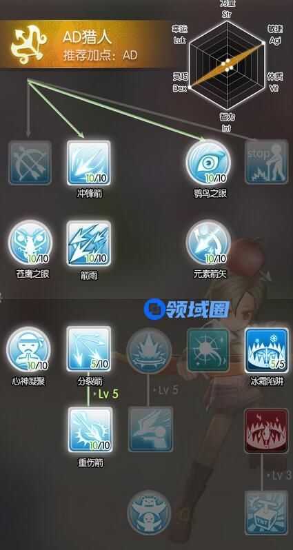 AD猎人是将弓箭用到极致的猎人。敏捷(Agi)提供攻速,灵巧(Dex)提供攻击力和命中率。