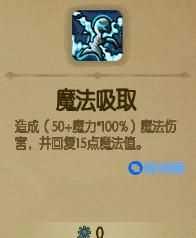 造成(50+魔力*100%)魔法伤害,并回复15点魔法值。