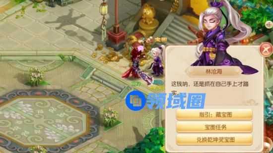 (2)玩家每日可以通过完成宝图任务获得10张宝图,完成每次宝图任务都有一定概率获得1张藏宝图。宝图任务难度不大,在仙侣的帮助下玩家可以快速将宝图任务NPC“宝图强盗”击败
