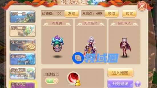 当玩家已经刷完了所有任务,但还想要获得经验;或是不想再刷活动了,只想挂一会机,那么便可以点击游戏左上角的“挂机”按钮进入“混沌时空”挂机。混沌时空是玩家挂机刷怪的重要地点,混沌时空共分为10个场景,按照难易程度分为混沌一层至混沌十层。在玩家选择挂机时,系统会默认推荐玩家至最适合玩家挂机的层数。混沌时空除了能够挂机获得经验外,也是捕捉变异宝宝,与好友增加好友度的重要方法。