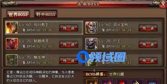 以上是领域圈小编为您整理提供的游戏攻略,希望这个攻略对您有所帮助,请时常关注领域圈《沙巴克传奇》专区,领域圈将为您提供最新的攻略。