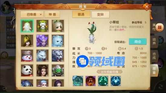 1、首先进入游戏,系统会赠送一只满成长的极品小草娃。这是一只拥有治疗技能召唤兽,前期完全可以一直使用小草娃过渡。因为前期升级比较快,任务副本的难度也不会太大。因此我们可以一直带小草娃到45级左右。