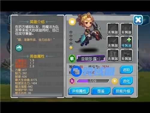 虽说这是个萌萌哒的妹纸,但是不要小看她哦~具有灵巧的身法与黑暗系的魔法就注定她的不平凡,是品质为18的紫色英雄。技能阴影连击(对敌方前排单体造成100%攻击伤害,同时自身提升20%暴击几率)和技能急咬(对敌方前排单体造成 100%攻击伤害)就说明她前排杀手的事实!