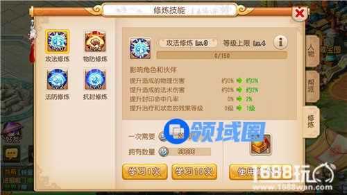 | 修炼等级 | 消耗经验 | 消耗银币 | 修炼等级 | 消耗经验 | 消耗银币 |