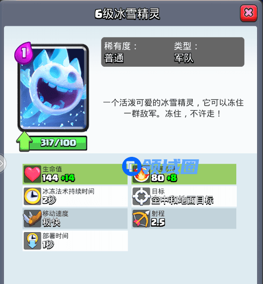 需要注意的是,我们的小精灵在升级时只会增加我们的生命值和爆炸的伤害,并不会提升它的冰冻时间。不过你要是有心将它加入你的卡组的话,等级还是很必要的,毕竟被人一下打死就不好了啊。
