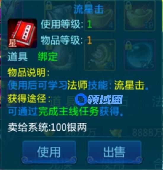 1、在玩家完成主线的过程中,会逐步获得自己职业技能书,包括4个被动技能和4个主动技能。(下图为法师的其中一个主动技能)