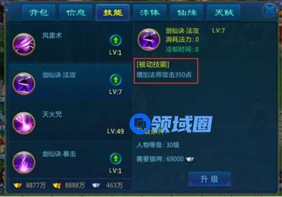升级被动技能可以提升人物属性。