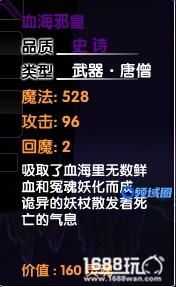 血海邪皇是由孟婆掉落的史诗级唐僧武器,也是合成血海魔童的必要装备之一。