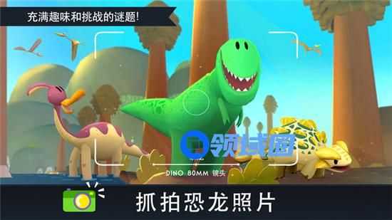在游戏中玩家将亲身进入到侏罗纪公园当中,玩家将利用手中的照相机记录下生活在这里的动物们的状态。游戏采用了卡通风格的画面设计,看来游戏的目标受众年龄应该不会太大。在游戏中玩家的自由度还是比较小的,游戏开始之后玩家将会在设定好的轨道上开始移动,而玩家所能做的就是利用手中的相机拍摄那些动物,当然玩家还可以利用一些道具与恐龙进行互动。