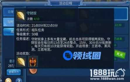 首先小编先给大家介绍下这个守财奴活动,该活动每天在系统的规定时间内开启,玩家可以在这个时间段内前去参与,另外需要玩家们的等级到达50级才可以进入,但是进入的形式必须以组队的形式进入这样才可以算得上正式的参加了这个活动,在进入地图之后玩家们需要做的事情就是击杀守财奴,守财奴身上有大量的宝藏击杀后玩家们就可以获得对应的装备还有纯金叶子的奖励。