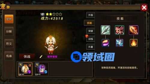 宠物的品级最高为SS级,最低为B级,按照定位可分为防御型、输出型和控制型,面对不同的敌人选择不同类型的宠物可以让你面对任何情况都应付自如。