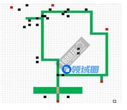 红色为传送门,绿色为城墙,最上面城墙的上面基本都是刺客(刺客能爆大小金块和紫装)。