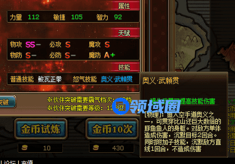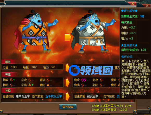 伙伴突破需要霸气档次7档;伙伴突破需要等级无限制