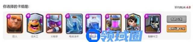 完整combo:樵夫(在前)+巨人(在中)+火枪手(在后)+小闪电(可选)+公主(可选),在预判出对面会用单体(小皮卡/火枪手)来解巨人的时候可以手里留一个大闪电,正好一波带走。火枪手注意要稍微靠近巨人一点,这样就能吃到樵夫的狂暴,从而打出一波海量输出。(狂暴火枪手的攻速非常快,就像机关枪一样,啪啪啪一个塔就不见了。)