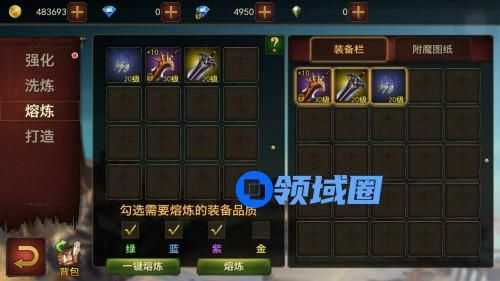 有多余的装备怎么办?升级后不再需要低级装备了怎么办?打副本掉落的垃圾装备太占包裹怎么办?那么熔炼绝对是个好去处,一键勾选不需要的装备,再一键熔炼变废为宝,可获得用于打造装备的熔炼值,还有概率重铸出更高品质的装备,而已经强化的装备在熔炼时还会100%返还强化石和金币呢(真是一点都不能浪费)!