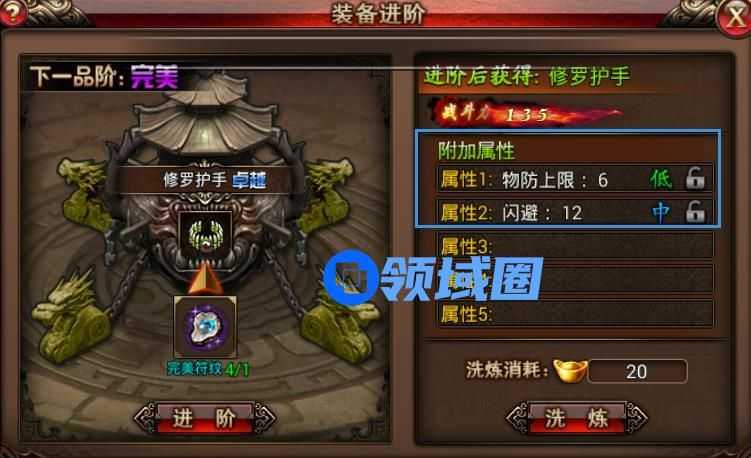 合成对应的符纹后,点击角色所佩戴的装备,选择进阶,即可利用符纹增加装备属性,提升战力。