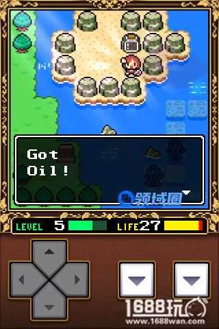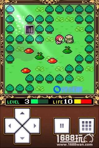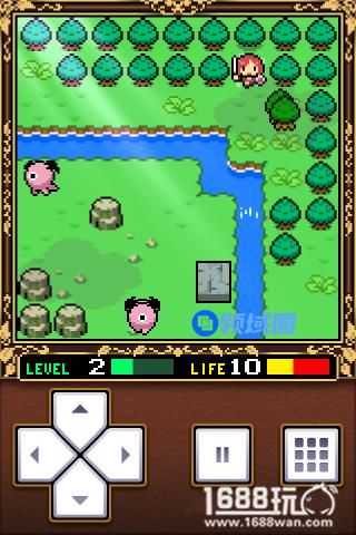 然后就一直往下走,途中会有一块石头,把它推到水中吧。另外在这里会遇到一种绿色的怪物,先躲开它先以现在主角的实力,很容易被它弄死的。在最下面拿到一颗树苗。