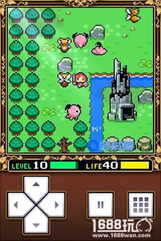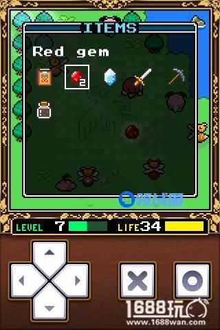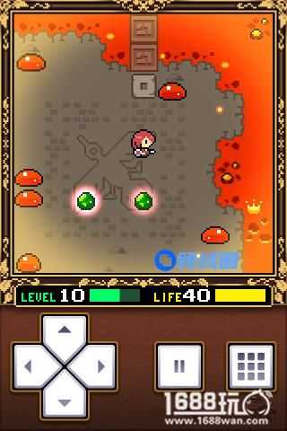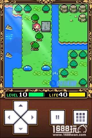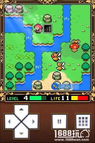 小小勇者的主角是一个非常可爱的MM。游戏开始先在四周探索一下,可以拿到红宝石和魔法碎片,然后来到一开始那一个地图,来到指定的地点使用魔法碎片(后面站到这个位置可以回血,游戏中很多场景都有设置)。这样就可以拿到左边封印的希望之剑和盾,装备好希望之剑和盾以后就可以开始冒险啦。必须找自己等级相当的怪物来升级,找比自己等级高的容易挂掉,找比自己等级低的得不到经验的,这里要注意了。小编开始在周边练练级,但不小心挂掉了,不过不用担心,如果不小心挂掉,你会在一开始的地方重新复活。