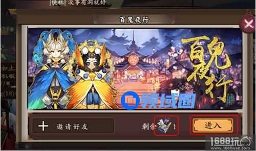 看这里看这里!这里就是进入百鬼行的地方,点一下[进入],支付一个百鬼券就能进行百鬼夜行了