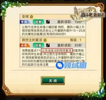 针对《战斗吧蘑菇君》中某些特定职业,在抽到适合该职业武器时,以上四点都可以暂缓。如:牧师(本职奶),能抽到加血或者复活的武器就可以是一个好牧师(如图5所示复活技能),骑士能够抽到稳拉仇恨的武器也可进行培养。