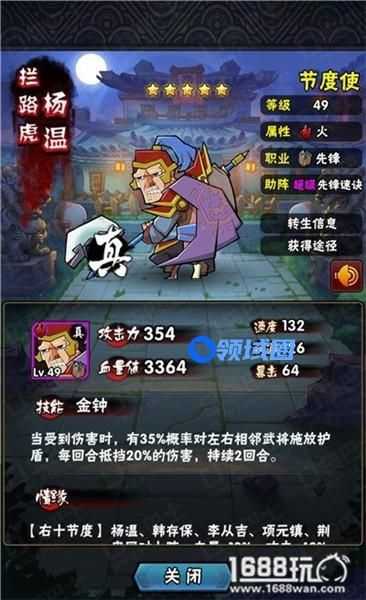 杨温被攻击35%概率给左右施加减少20%伤害的护盾,变相加强左右的肉盾程度。也是义结武将之一。很容易得到。效果也是不错的。概率也算可以。基本可以搭配任何阵容了。