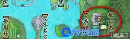 如下图,红圈中心位置就是长歌万书楼,登上万书楼顶,就可以达成“万书楼顶的烟波”成就了哦~