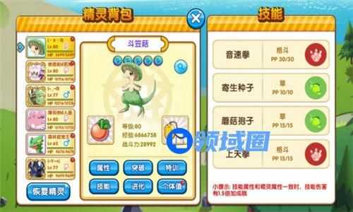 而且斗笠菇自带草系的另一个神技·寄生种子,配合蘑菇孢子,斗笠菇可以让敌人变成一个稳定的气血补给包(卡比、蛋神是首选,班吉拉最好不要,因为有时会遇到带先攻的班吉拉),除了高速通关,还有造福队友的双重功能