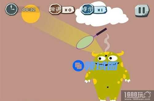 第10关:这一关主要是利用放大镜来聚焦大阳光来烧死绿食怪,具体操作是:画面上有一朵云,我们需要将它移开,然后太阳就会出来,这时候我们就利用地下的一个放大镜放在太阳和绿食怪之间,这样就可以聚焦太阳光将绿食怪烧死