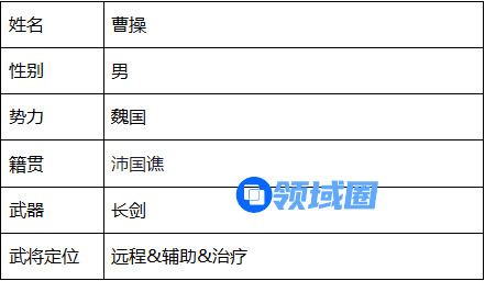 曹操是一名远程辅助型武将,全方面提升友军的战斗能力,能显著治疗友军。